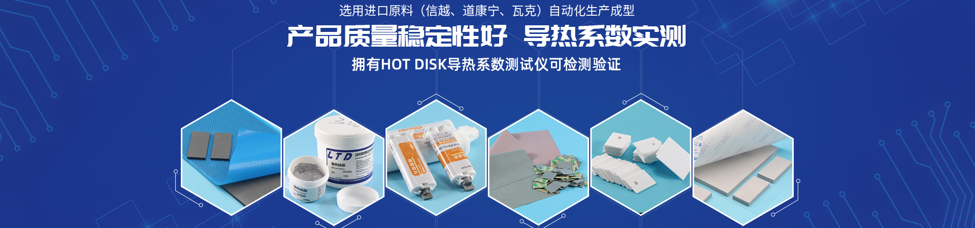 公司具有從原料配方、混煉、配色、攪拌、抽真空到硫化成形等一條龍生產(chǎn)能力。主要產(chǎn)品有:導熱硅膠片,導熱陶瓷片,導熱硅脂,導熱泥,導熱灌封膠,導熱雙面膠,導熱石墨膜等導熱絕緣材料。阻燃防火性能符合U.L 94V-0 要求,并符合歐盟SGS環(huán)保認證 及ROHS要求。可為手機、LED照明、電源、筆記本電腦,平板電腦、家電、網(wǎng)絡產(chǎn)品等 相關行業(yè)的客戶提供一站式導熱絕緣材料產(chǎn)品及散熱解決方案!